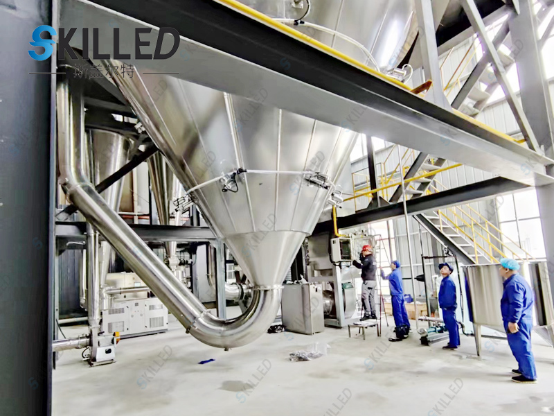2、雾化:喷雾干燥机的雾化系统必须确保雾滴大小分布均匀,这是至关重要的。因为这样才能确保产品质量的合格率。