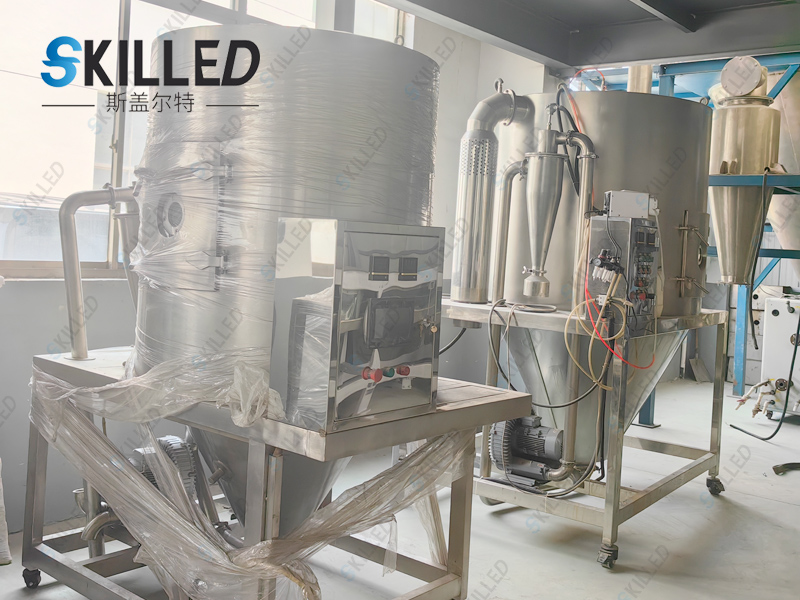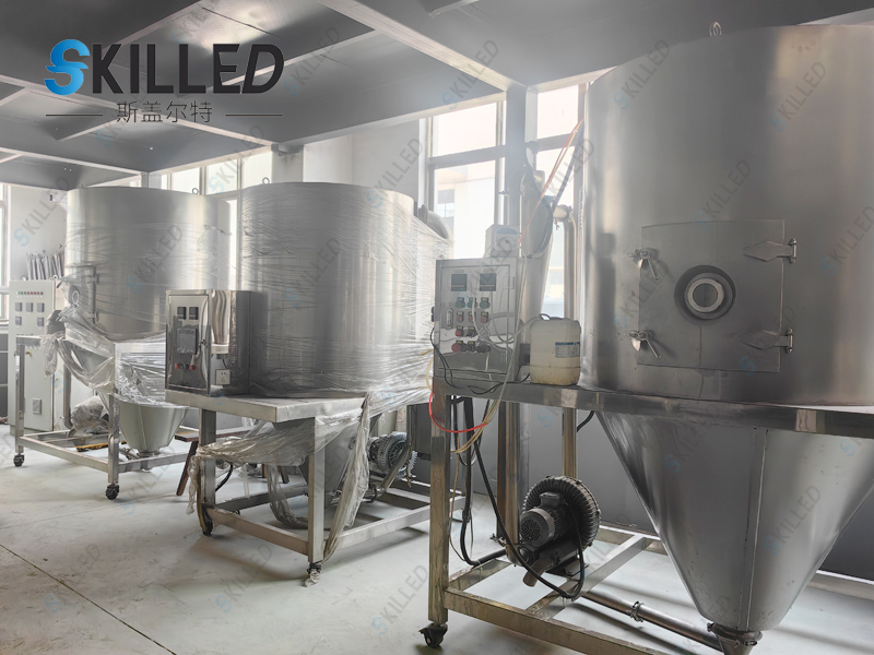 2、雾化:喷雾干燥机的雾化系统必须确保雾滴大小分布均匀,这是至关重要的。因为这样才能确保产品质量的合格率。