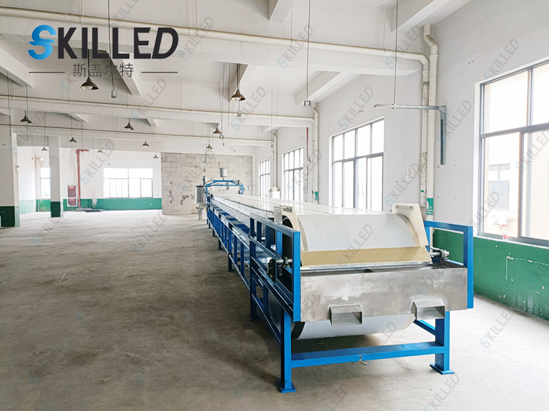 该机由液体变固体粒状,主要是通过造粒模头造粒,采用回转式钢带连续进行,通过喷淋水冷却定型。